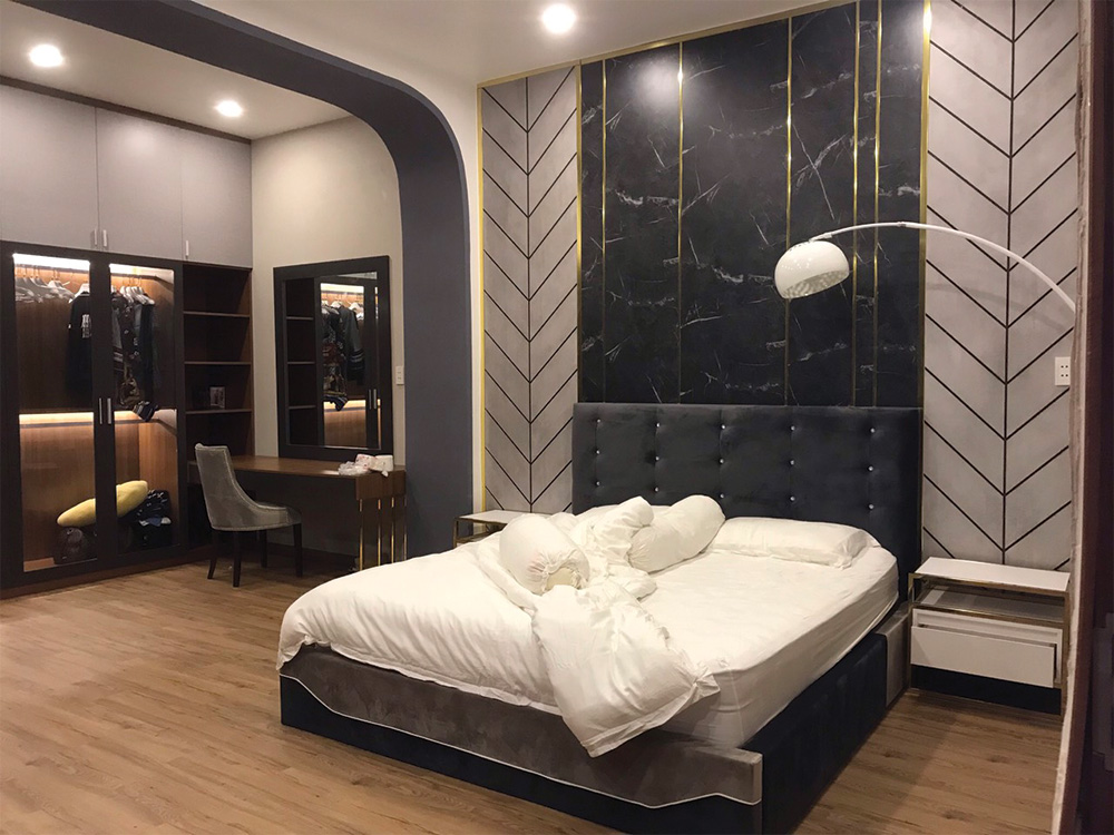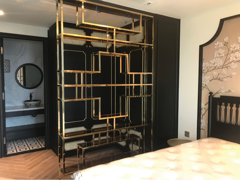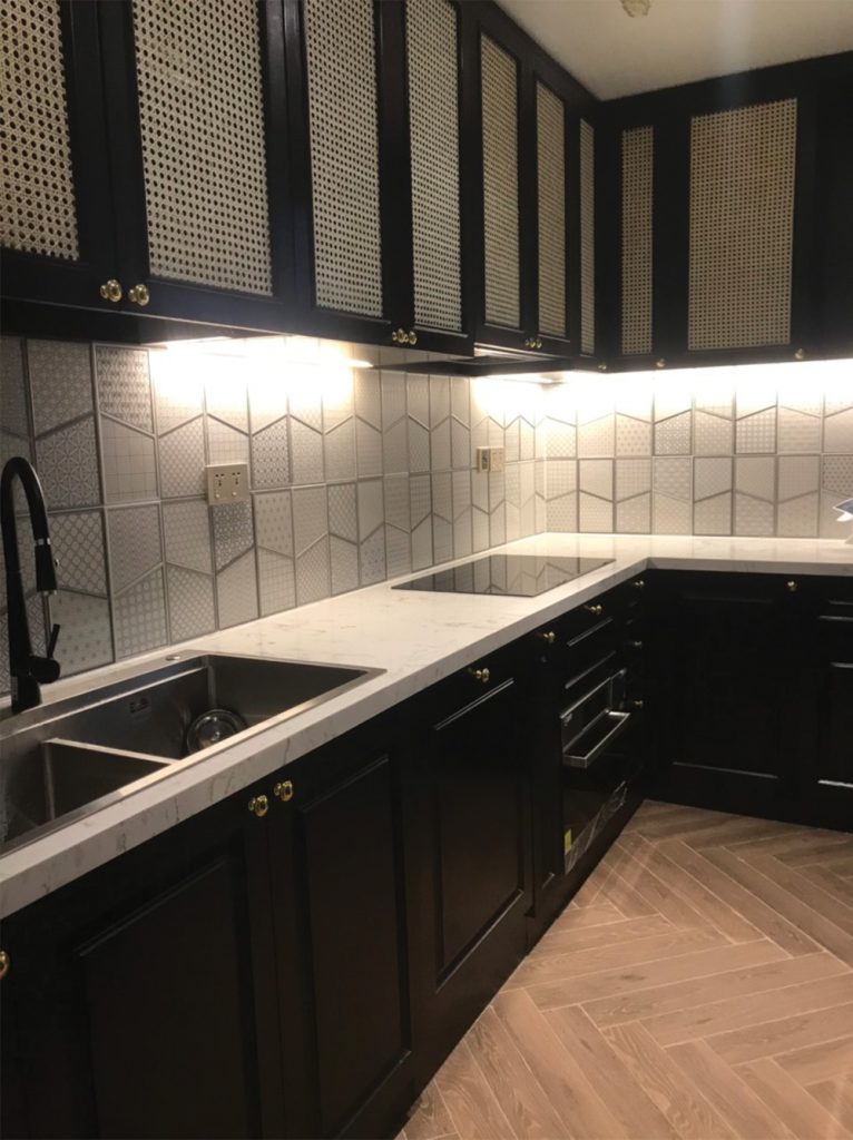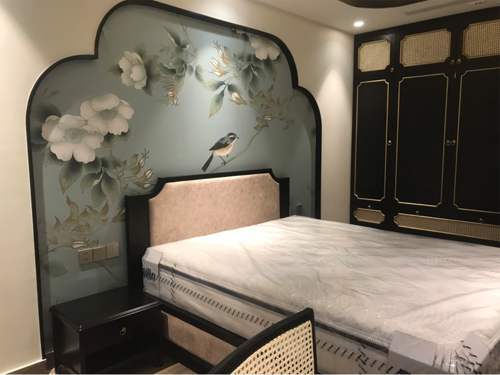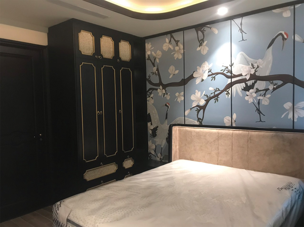 Thi công căn hô cao cấp phong cách Indochine đang được yêu thích với tông màu xám đậm, hoa văn cổ điển phương đông.